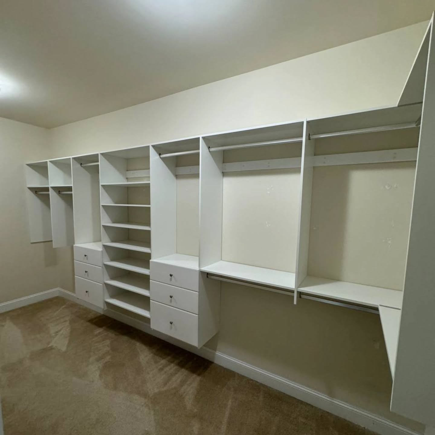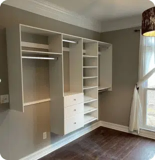 Can I customize every part of my closet?Yes! You can choose shelving, drawers, rods, finishes, and accessories — all tailored to your space and style.