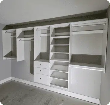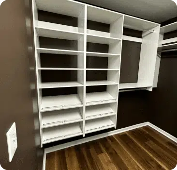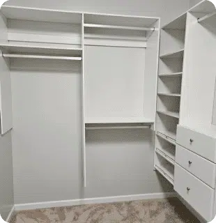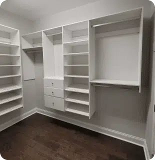 Can I customize every part of my closet?Yes! You can choose shelving, drawers, rods, finishes, and accessories — all tailored to your space and style.